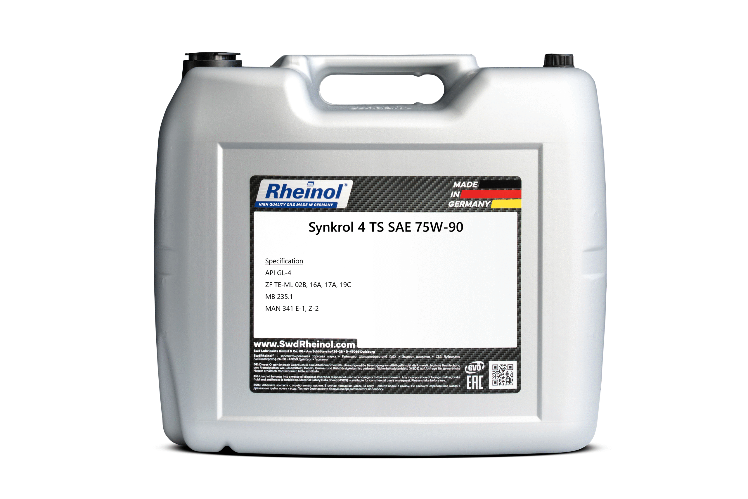 Η Rheinol Synkrol 4 TS 75W90 χρησιμοποιείται για τη λίπανση των βαρέων φορτίων αξόνων, καθώς και για συγχρονισμένα και μη συγχρονισμένα χειροκίνητα γρανάζια σε κιβώτια ταχυτήτων και κιβώτια μεταφοράς μηχανοκίνητων οχημάτων και μηχανών κατασκευής.